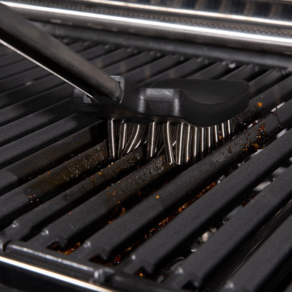 The durable stainless steel coil springs move independently to efficiently remove food residue for optimal grate cleaning. This stainless steel, coil spring grill brush comes with a replacement head.