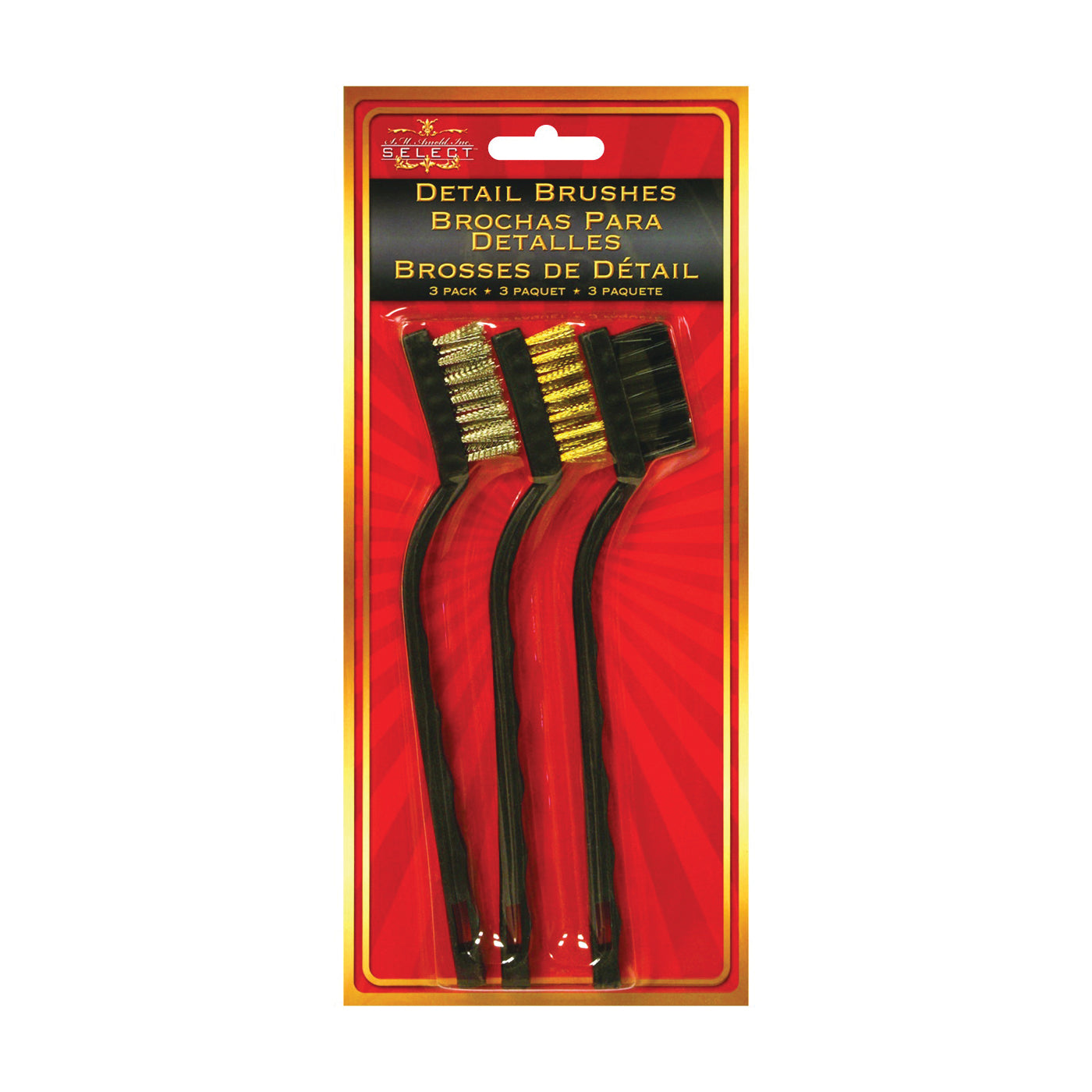 Finger grooves along handle provide extra gripping power. One each, brass, nylon and stainless steel brushes.