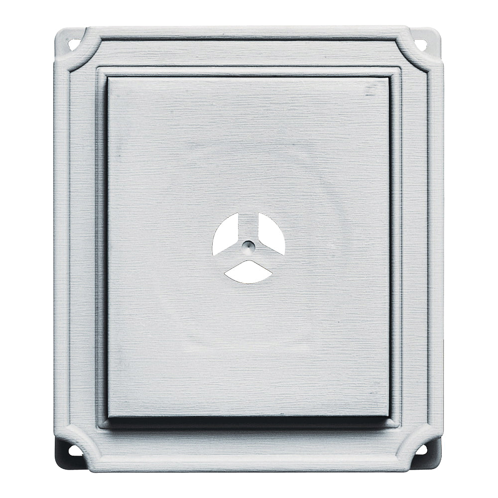 Decoratively provides a level and waterproof surface for all exterior fixtures. Durable, maintenance-free, UV stabilized and constructed with color molded so they won't scratch, flake or fade. The patented snap-on trim ring makes installation easy. 5 x 6 in ID. 7 x 8 in OD.