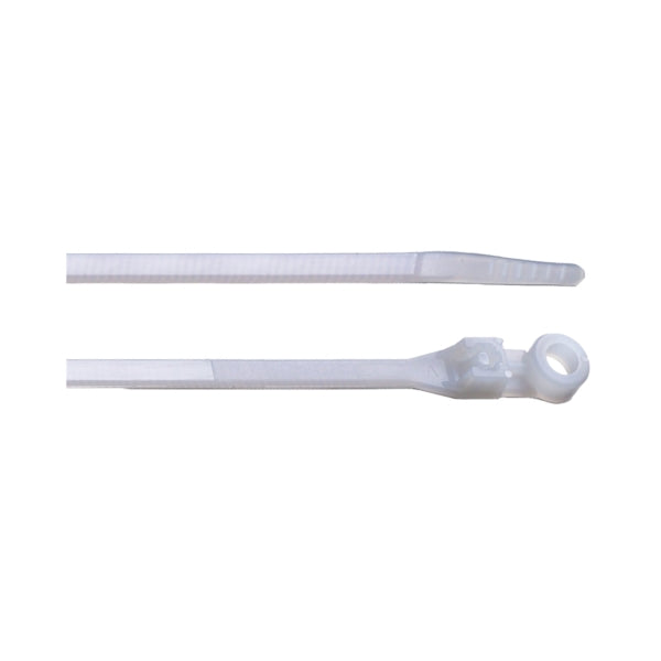 These cable ties are designed with a special mounting hole at the top of the tie which enables the user to mount or hang a bundle from just about anywhere. The hole accepts a #10 screw. Mounting ties are great for securing bundles of cables to studs, walls, ceilings or other surfaces. Also hang cords, tools and countless other applications with these great cable ties.