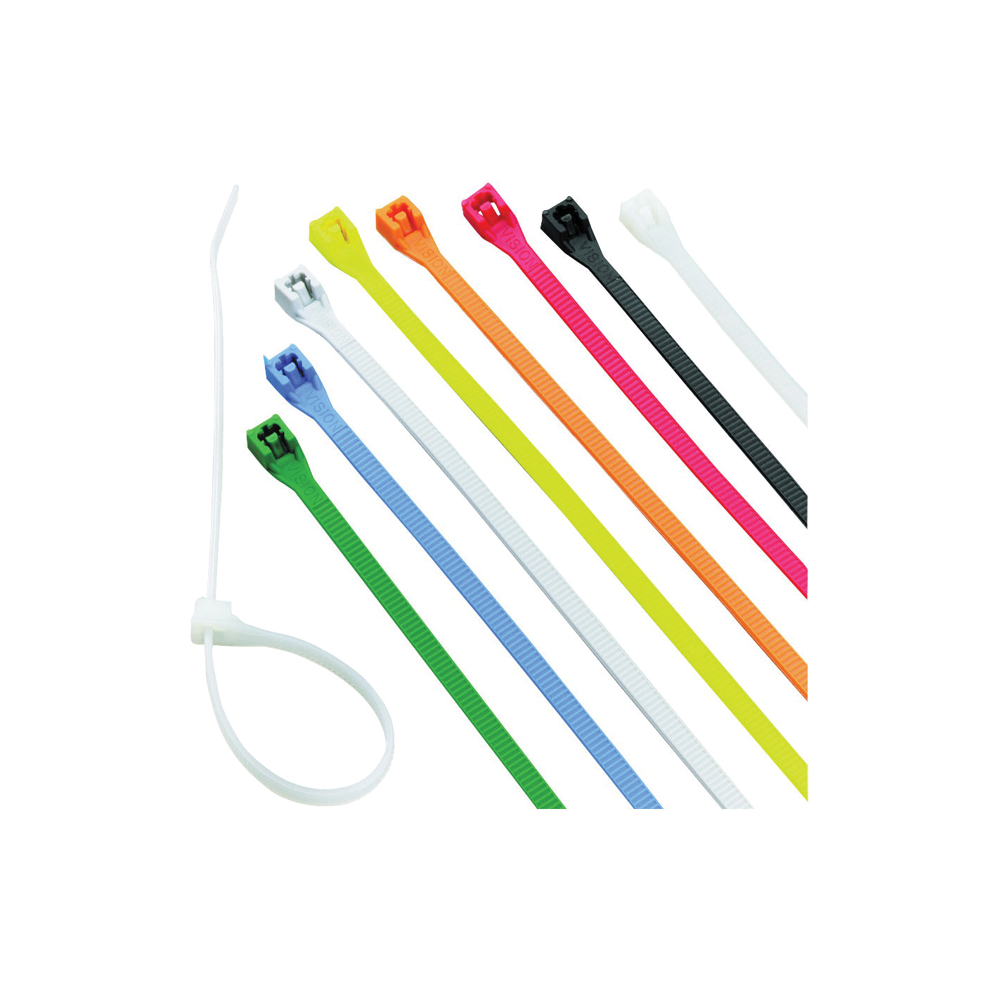 Designed for strength, durability and reliability. Ideal for all bundling and organizing tasks from the workshop to the office and from the laundry room to the kitchen; you name it and these ties will bundle it. Designed with simple enhancements that make them easy to use including a slightly bent tip to ensure easy insertion into the tie head and close serrations along its length to promote precise adjustment when tightening.