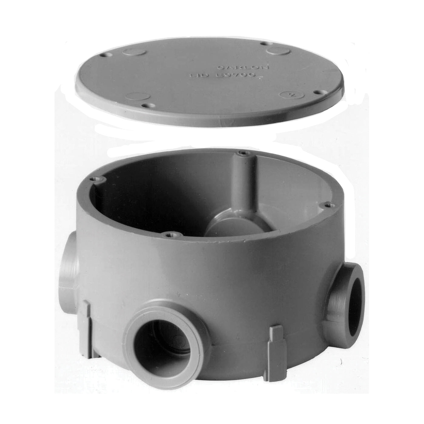 Four knock-out type socket openings, 90 deg spacing. Includes separate mounting feet, cover and gasket. Non-conductive. Will not rust or corrode.