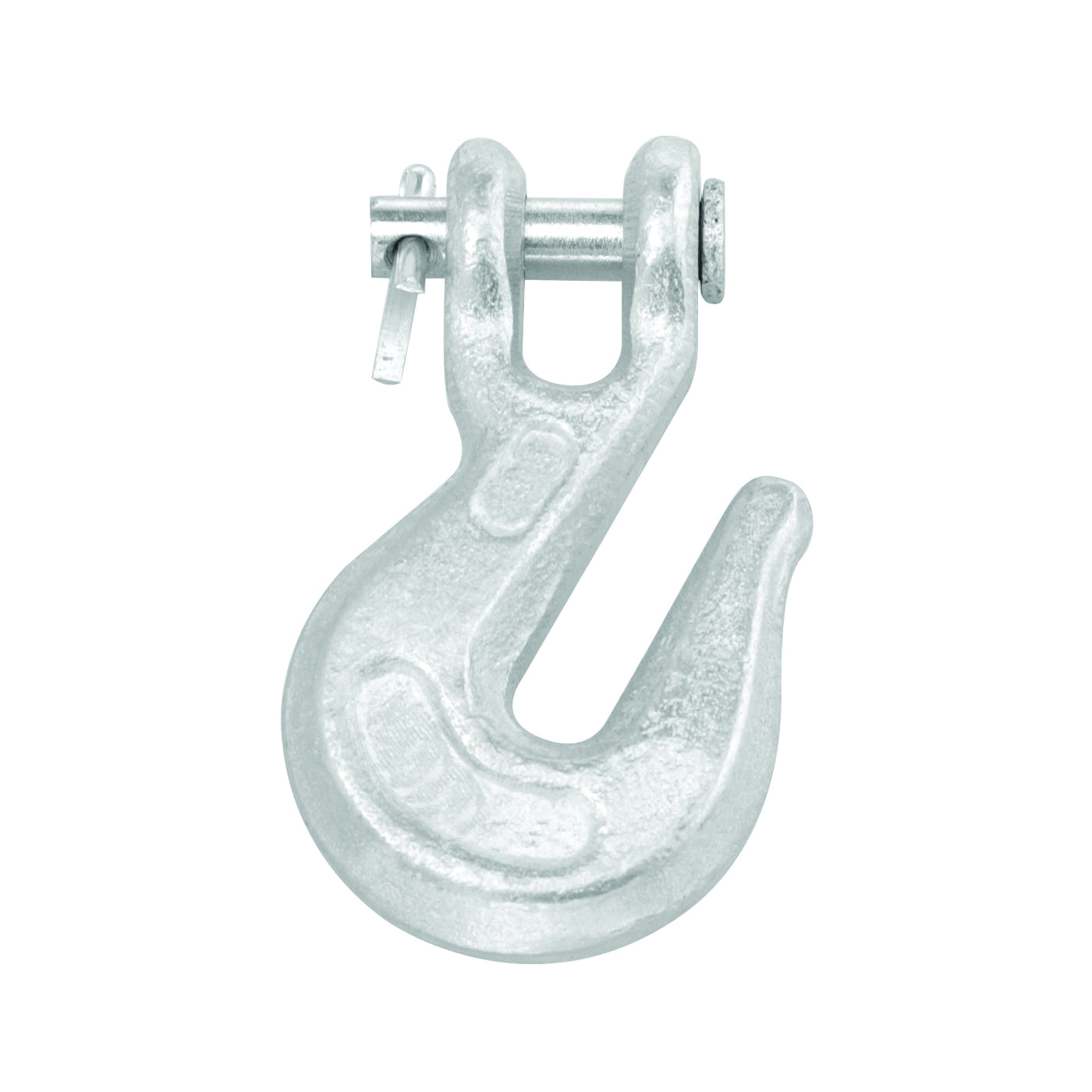 Designed to be used with Grade 43 or Grade 30 chain. Heat treated pins. Hooks are heat treated and tempered. Hooks embossed with chain grade, fractional size and country of origin. Hooks embossed with trace code providing traceability through manufacturing and testing process to heat of steel. Design ultimate strength equals 3 times working load limit, matching NACM specifications. Grab hooks are designed to grab a single link of chain on the side to form a loop for dragging, pulling or towing. DO NOT EXCEED the working load limits for chain or components. DO NOT USE for overhead lifting or hoisting. DO NOT USE if the chain or components are visibly distorted or worn.