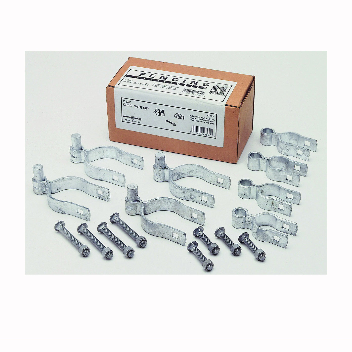 Includes four 2-3/8 in x 5/8 in post hinge, four 1-3/8 in x 5/8 in frame hinge and eight nuts and bolts.