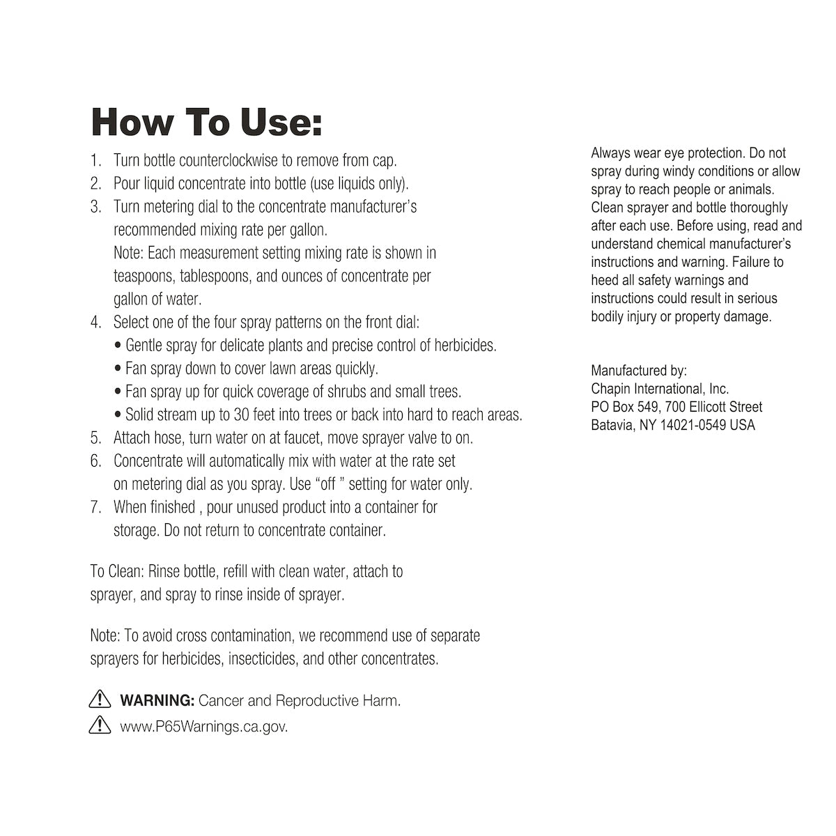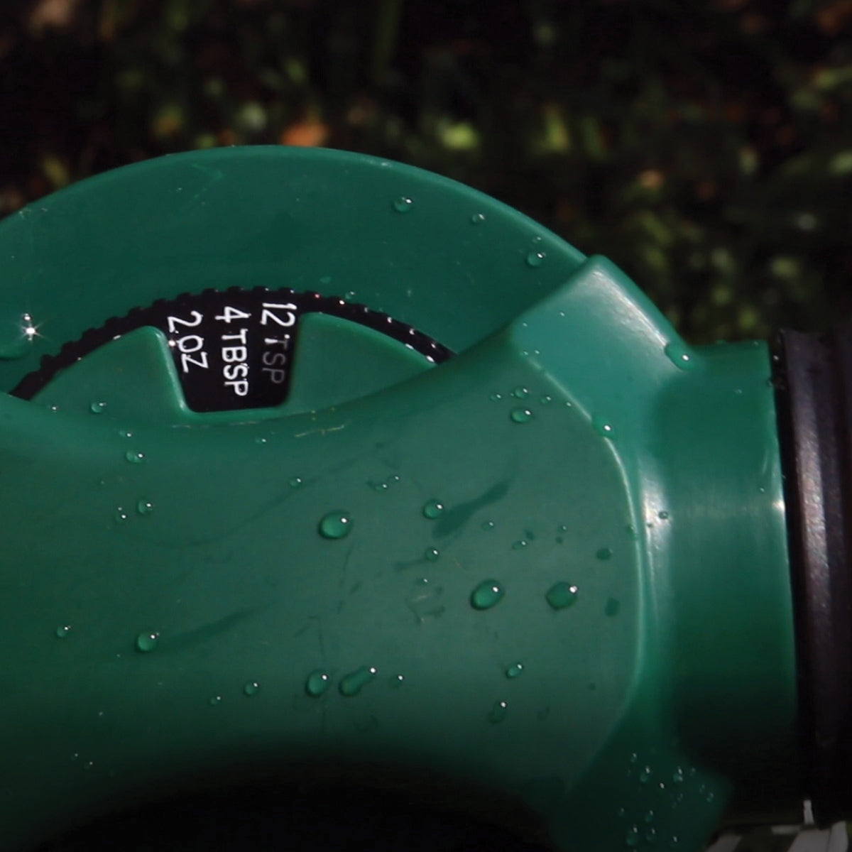 The select-n-spray hose end sprayer fits onto any hose end and offers 4 different spray patterns with an easy on or off thumb control. It has a built-in anti-siphon feature to prevent backflow, large capacity bottle that holds up to one pound of material and automatically mixes liquid, water soluble fertilizers without premixing. The rustproof polymer construction makes it durable and chemical-resistant. Twelve specially selected mixture settings meet the needs of most popular garden treatments.