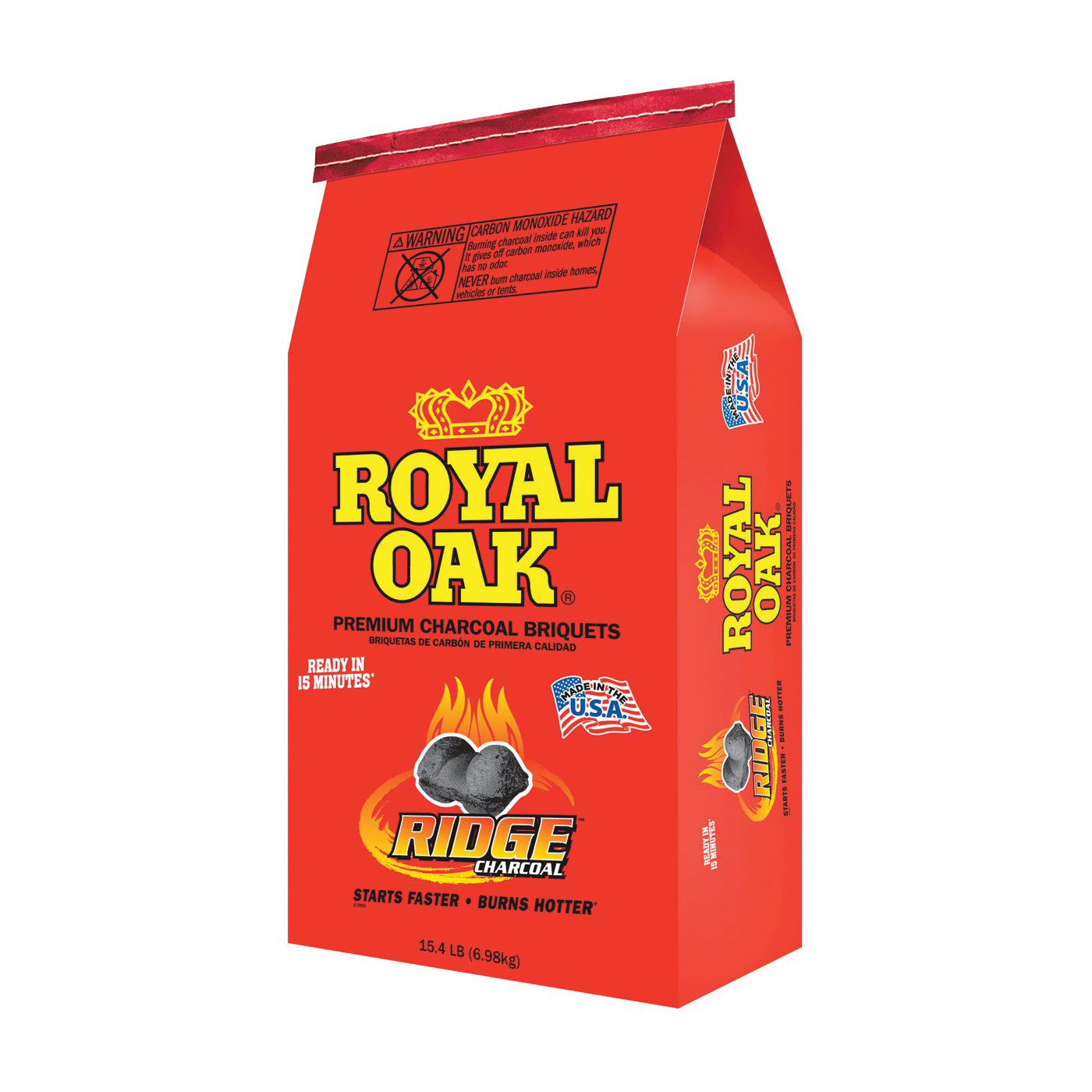 The original red bag. Royal Oak premium briquettes are assured to burn evenly and last long. Starts fast and burns hot. Ready in 15 mins.