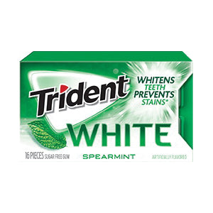 Trident Sugar Free Gum, Net Content: 16, Flavor: Spearmint, White