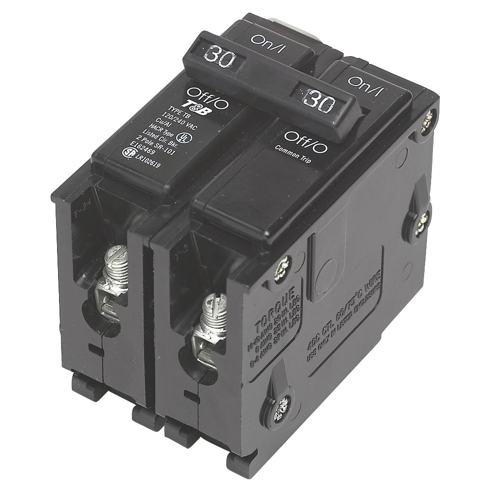 Molded case with non-interchangeable trip. Will replace American Switch, Westinghouse Type BR, Bryant, Challenger, Sylvania, Crouse-Hinds, Murray, Frank Adams, General Electric (full size only), General Switch, I-T-E, Gould, Montgomery Ward and Sears. UL listed. HACR rated. 120/240 VAC; 10,000 AIR. 1 in per pole (2 in total).