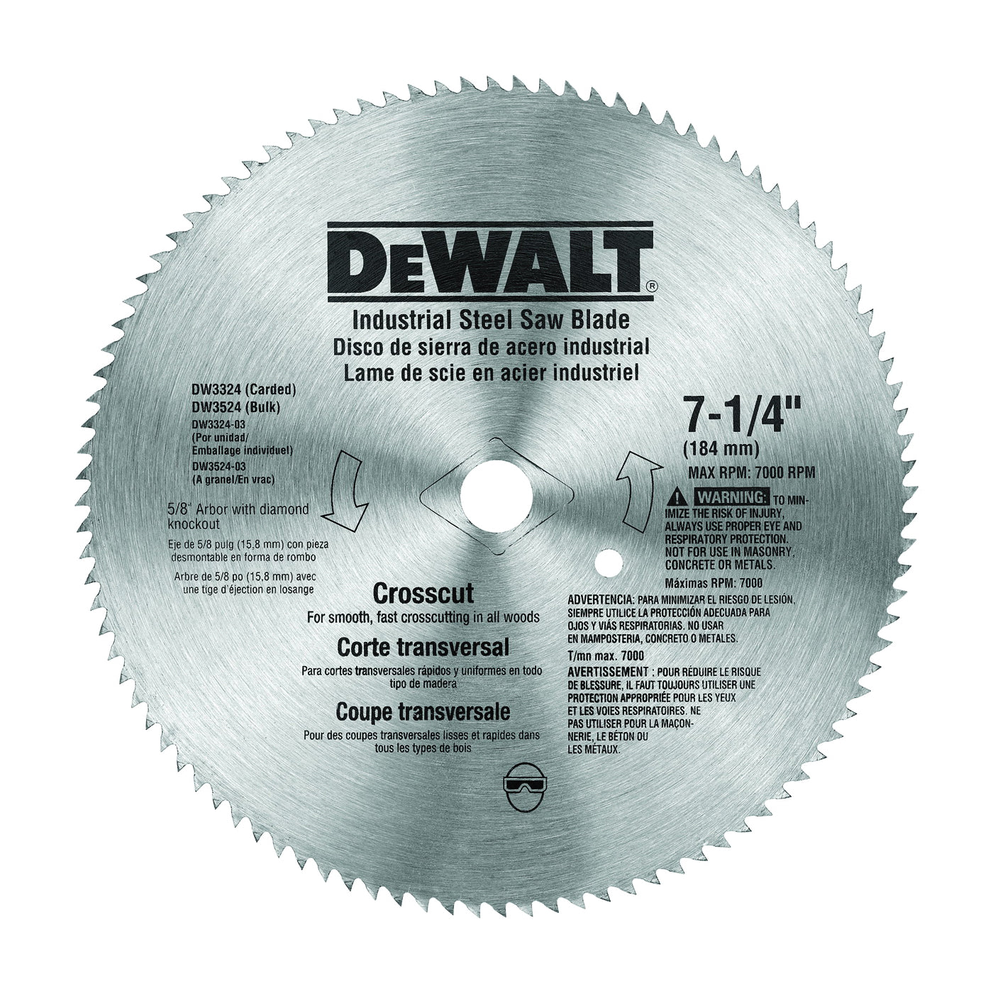Thin kerf, 0.086 in, portable construction saw blades designed for smooth, fast crosscutting in all woods. Precision sharpened teeth for fast, smooth cuts and longer life. Fully hardened steel body prevents blade warping and binding. Blade coating prevents rust and reduces friction, increased durability in heavy-duty applications. 7000 rpm, 050 in plate.
