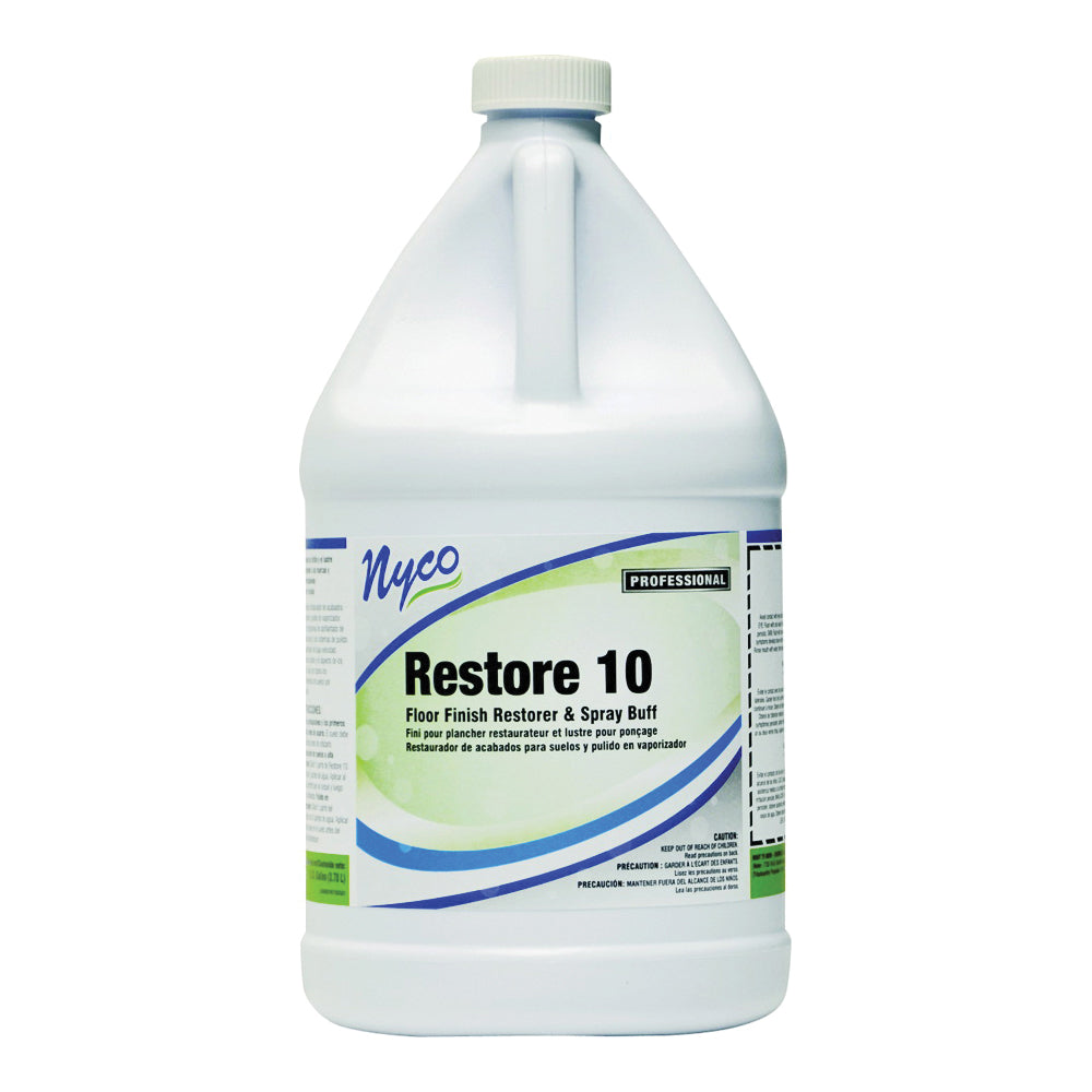 Restore 10 is a dual-purpose floor enhancer and buffing compound which restores the gloss and appearance to any floor. Use as a mop on floor restorer for high speed and propane burnishing programs and also as a spray buffing compound for high and low speed buffing. Can be used on any floor and will increase gloss, appearance and durability. Highly mark-resistant, it will harden, restore and reinvigorate finishes that are worn from repeated buffing and burnishing. Use of restore 10 creates a more even level of appearance and extend the life cycle of any finish, lowering the overall cost of floor maintenance.