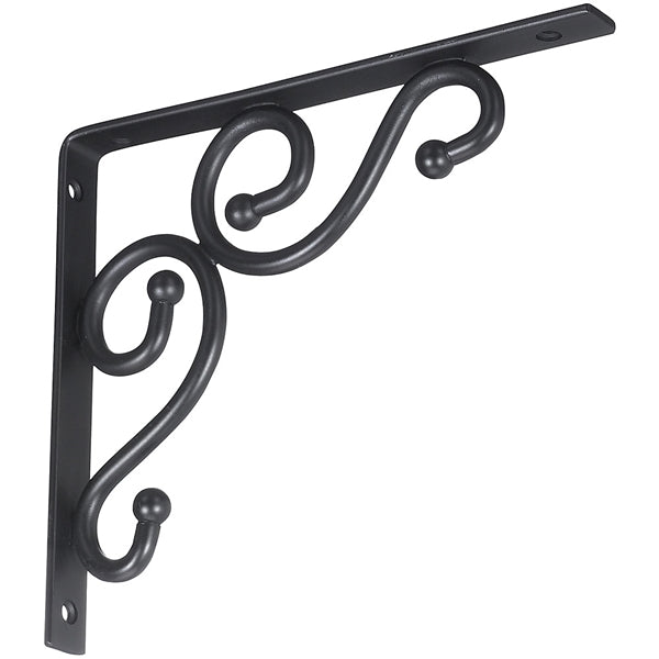 National Hardware Shelf Bracket, Wall Mounting, 7 in L, 8 in W, Black, Steel, Includes: Mounting Screw