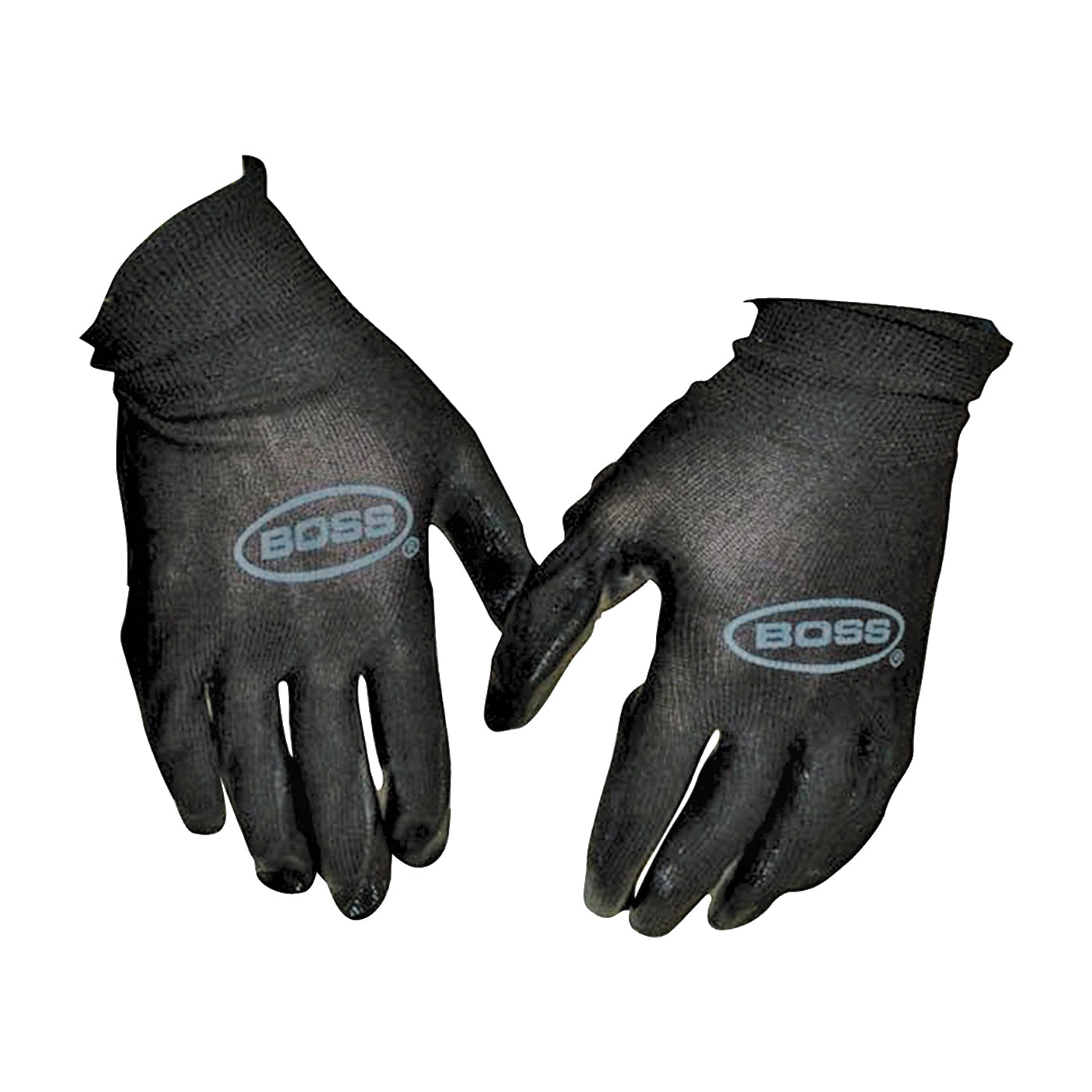 Five pair pack of stretch polyester knit has nitrile coated palm and fingers for maximum dexterity and tactility. Excellent resistance to cuts and abrasions, ideal for assembling applications and handling small parts. Size large.