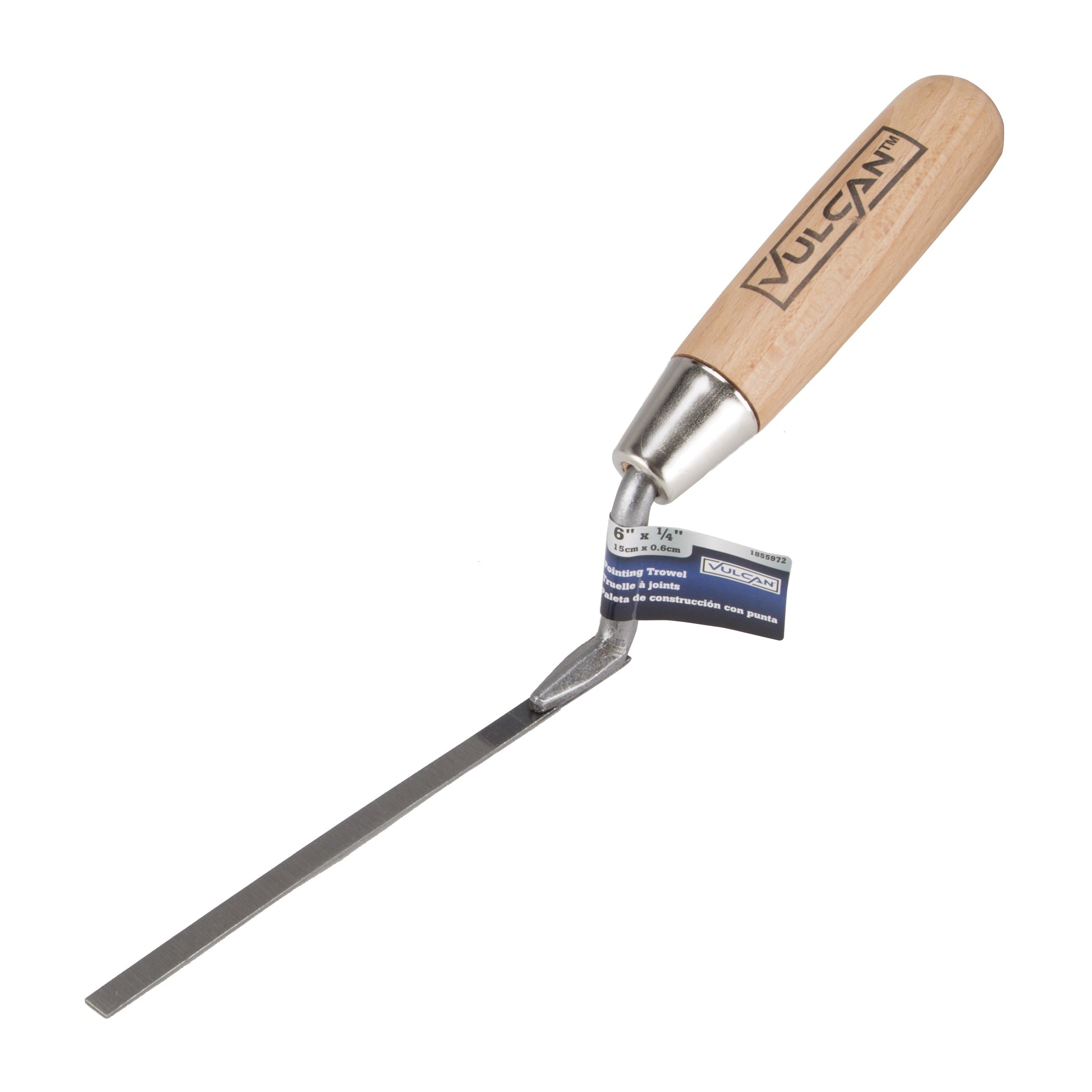 This Vulcan tuck pointing trowel is for repairing brickwork. It has a high-lift handle for maximum hand clearance. The high-carbon steel blade is welded to the shank with a soft grip for comfort and easy cleanup.