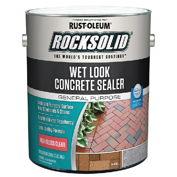 ROCKSOLID® wet look concrete sealer seals and protects concrete and masonry surfaces from the damaging effects of water, chemicals and UV light. The water-base, film-forming formula provides a protective barrier to keep water out, protect against stains and extend the life of your concrete while leaving a wet look, high-gloss finish.