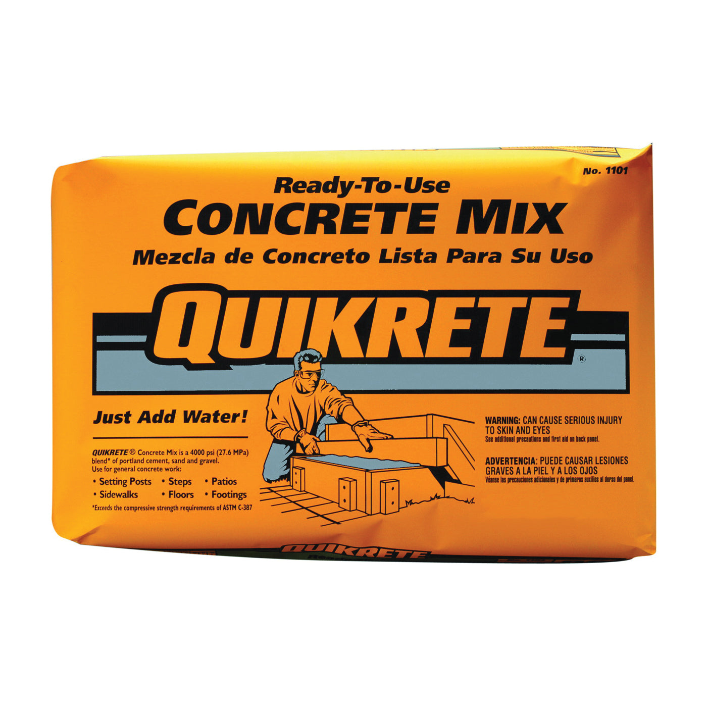Quikrete® concrete mix is the original 4000 psi average compressive strength blend of Portland cement, sand, and gravel or stone. Just add water. Use for any general concrete work.