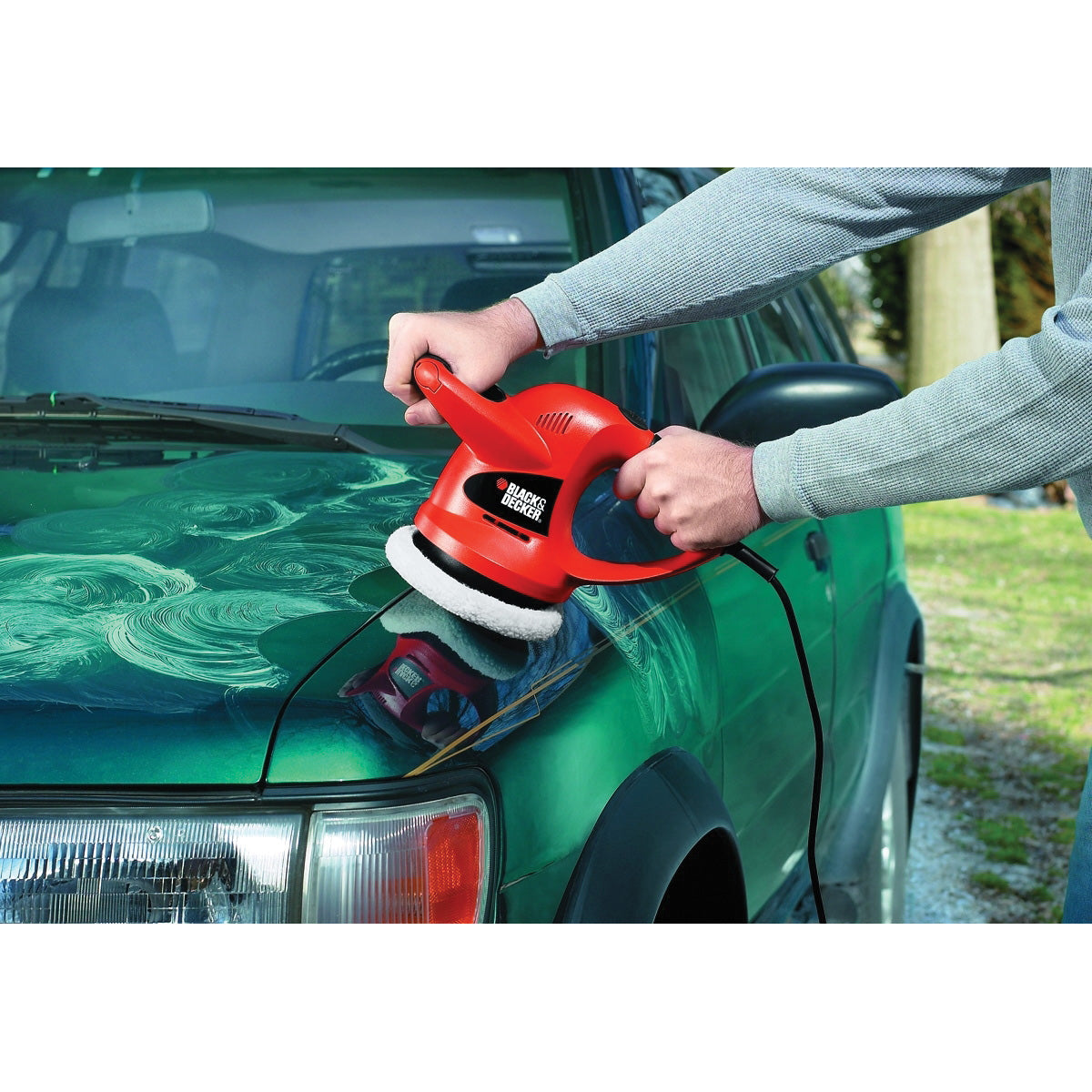 Comfortable and easy-to-use, this random orbit polisher and waxer helps you buff, polish and wax with ease. Random orbit action offers a swirl-free finish. Includes foam applicator bonnet and wool polishing bonnet.