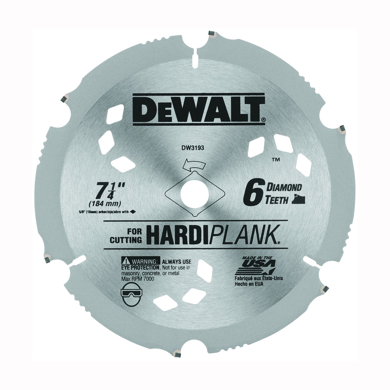 Thin kerf, 0.090 in, portable construction saw blades designed for cutting fiber cement products. Polycrystalline diamond (PCD) teeth provide maximum life and durability. Extra large gullet design improves material removal and minimizes dust, diamond heat vents minimize flexing and binding, -5 deg hook angle, flush teeth ground.
