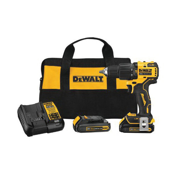 Includes (1) DCD708 20 V MAX Brushless Compact 1/2 in Hammer Drill/Driver, (2) 20 V MAX Lithium-Ion Batteries, (1) DCB107 Charger, (1) Belt Clip, (1) Carrying Bag