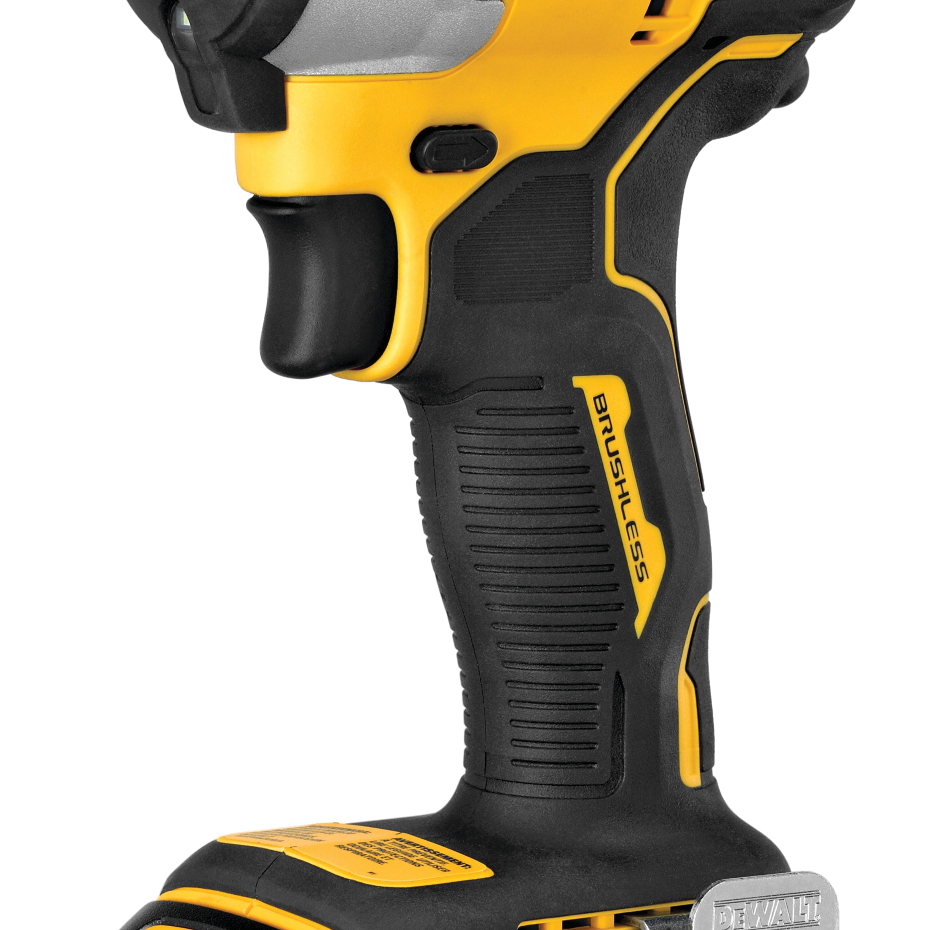 This compact brushless impact driver kit includes two 20 V MAX lithium-ion batteries, one charger and a carrying bag. At only 5.1 in front to back, this impact driver features a high-performance brushless motor that delivers 1700 in-lb of torque and three LEDs to provide optimum illumination as you work. The handle is ergonomically designed for increased comfort, balance and easier tool control. It also has a removable belt hook. It's backed by a 3 years limited warranty so you can buy with confidence.