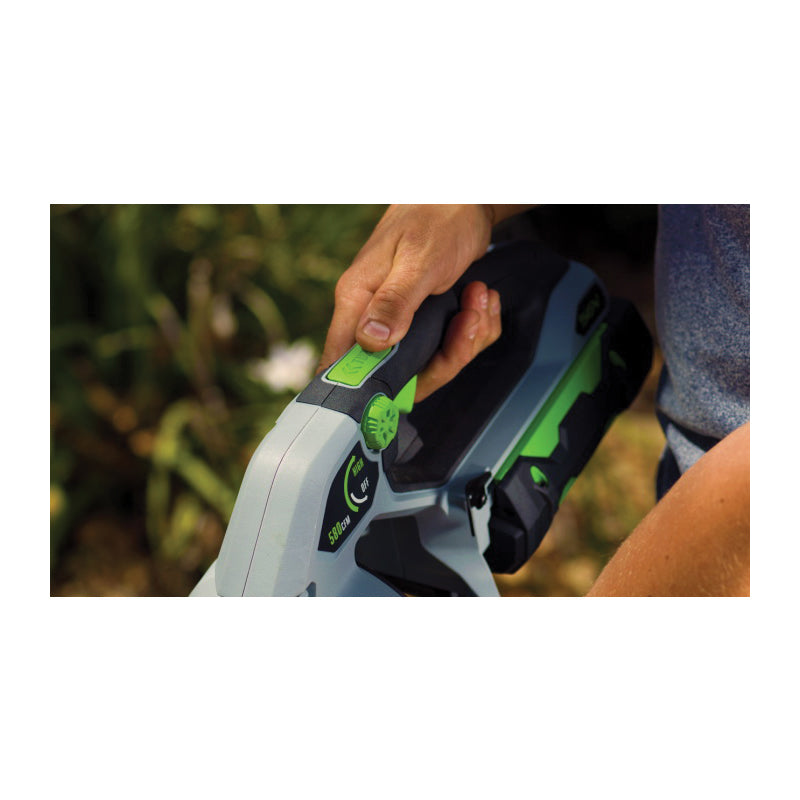The EGO POWER+ 580 cfm blower is the most advanced cordless blower in the industry. Turbine fan engineering, inspired by advanced aeronautics technology, performs better than premium gas-powered models. The high-efficiency brushless motor delivers longer run time, low vibrations and an extended motor life. The included flat and tapered nozzle attachments make clearing debris even easier. This quiet, light-weight and compact blower gets the job done better and faster. Experience Power Beyond Belief without the noise, fuss and fumes. Compatible with all EGO POWER+ ARC lithium batteries.