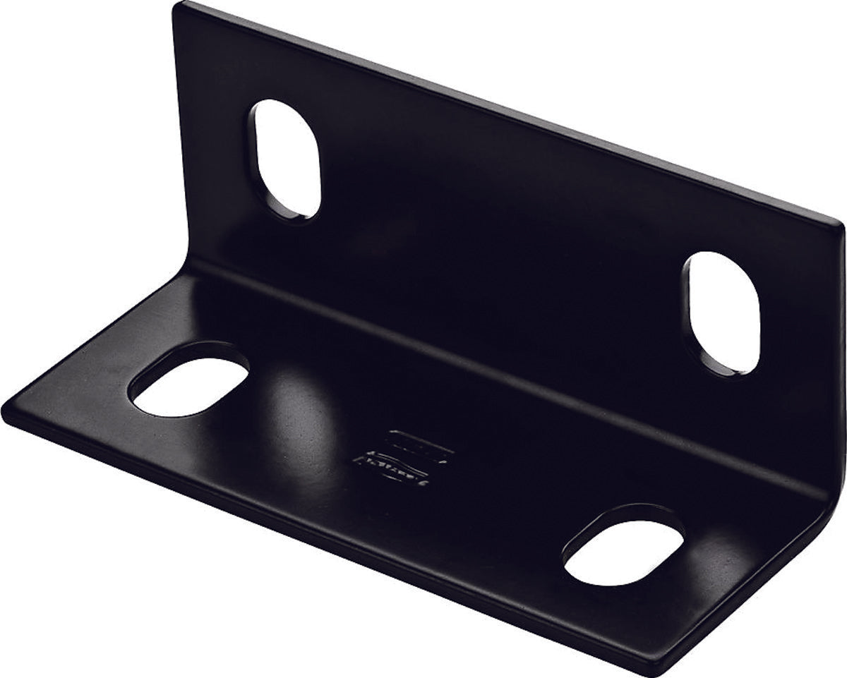 Used for reinforcing 90 deg angles by applying to the inside or outside of the corner. Slots for 1/2 in carriage bolt. Wider width provides greater area of stability for long intersections of building materials. Larger bolt holes provide options for structural support. Black powder coat finish for improved weather resistance.