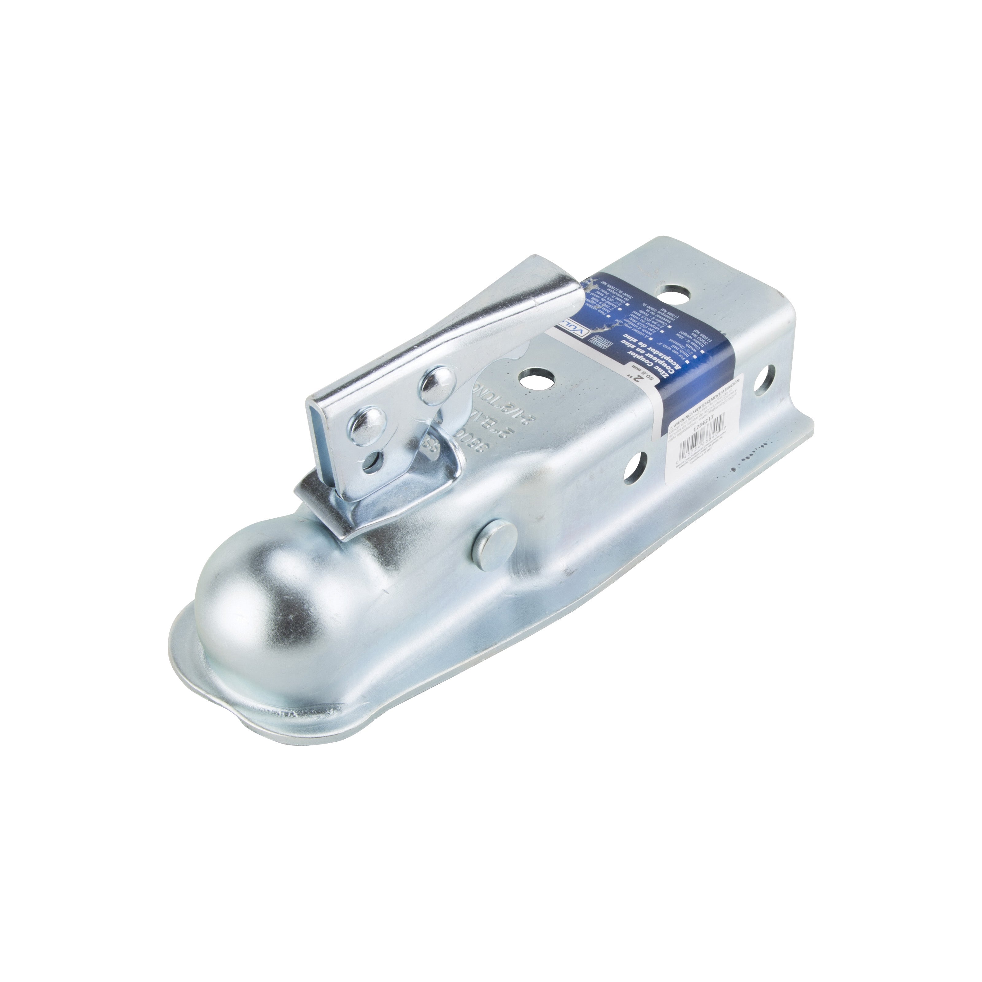 Vulcan Trailer Coupler, 3500 lb Towing, 2 in Trailer Ball, 2-1/2 in Channel Width, Lock Hole: 13.4 mm, Lever Latch, Steel, Zinc, Silver