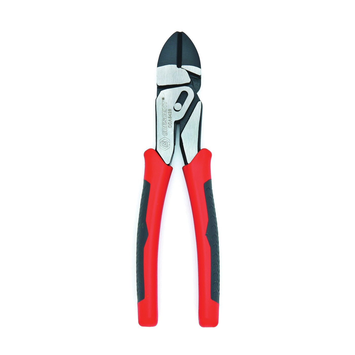 Unique pivot action design requires 40% less force to cut. Unlike standard pliers that pivot on the center-bolt only, additional leverage can be applied. This action creates more leverage and force to the cutting edge. Forged steel body for strength and durability. Induction hardened cutting edge for long life. Dual material grips for added comfort and durability.