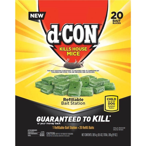 d-CON Refillable Bait Station, Solid, Odor/Scent: Sweetish Faint, Gray/Green, Compositions: Proprietary Filler, Cholecalciferol, Includes: (20) Refills