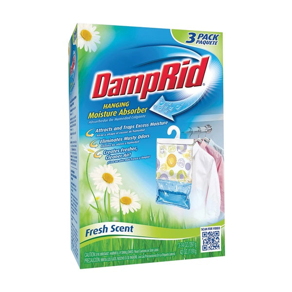 • The unique, patented design of DampRid fresh scent hanging moisture Absorbers is the ideal way to protect fabrics and other materials in enclosed spaces
