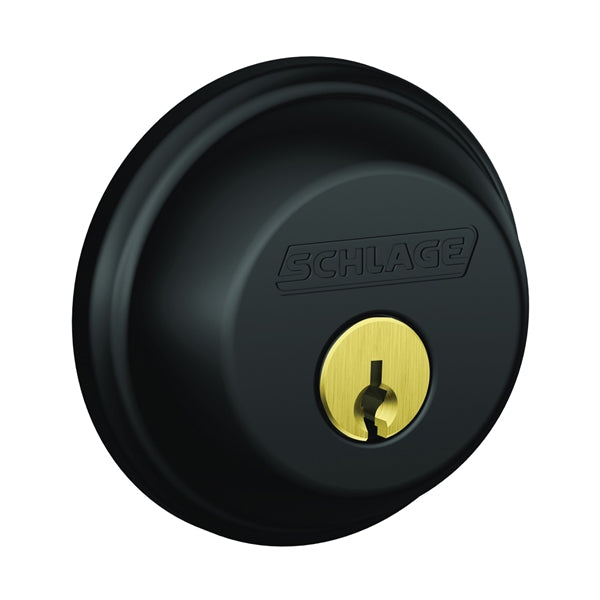 • Schlage B60622 Deadbolt, 1 Grade, SC1 Key, Metal, Matte Black, 2-3/8, 2-3/4 in Backset, C Keyway