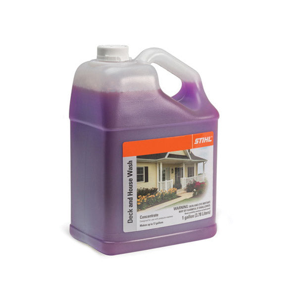 Ideal for removing mildew stains and chalk buildup on paint, Stihl deck and house wash is designed for use with Stihl pressure washers. This wash is hard water stable and safe for plants. It is made for all types of siding and is safe on ferrous and non-ferrous metal surfaces. It also contains special rust inhibitors to reduce corrosion and conditions surfaces prior to painting.