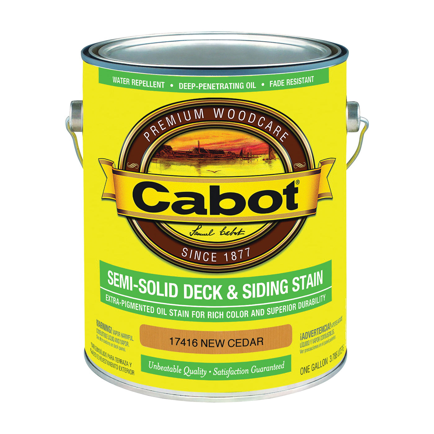 Cabot® semi-solid deck and siding stains are deep penetrating linseed oil-based stains that provide long-lasting beauty and wood protection, highlight the natural beauty of the wood's texture with a uniquely pigmented appearance. With their extra pigmentation, Cabot® deck and siding stains are extremely durable and help protect wood against the sun's damaging UV rays.