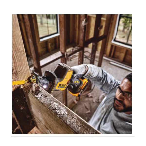 This is lightweight reciprocating saw is only 3.13 lb and 37% lighter than the DCS367 compact reciprocating saw. This saws LED helps illuminate dark workspaces and provides up to 2800 spm to help get the job done. The pivoting shoe and variable speed trigger provide added control for a variety of jobs. Includes one belt hook and two blades. Battery and charger sold separately.