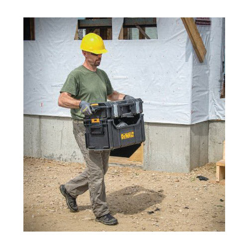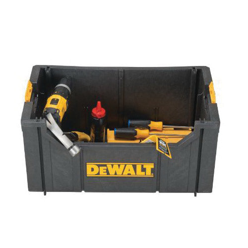 The ToughSystem® tote is part of the ToughSystem® line and is made with a durable, thick structural foam wall giving it a robust structure. It provides a large and accessible open interior for bulk storage. This Tote fits into the DWST08210 metal carrier with adjustable foldable brackets which allows for tailored configuration. The ToughSystem® Tote DS280 can also be stacked with other ToughSystem® tool boxes using the side stacking latches.