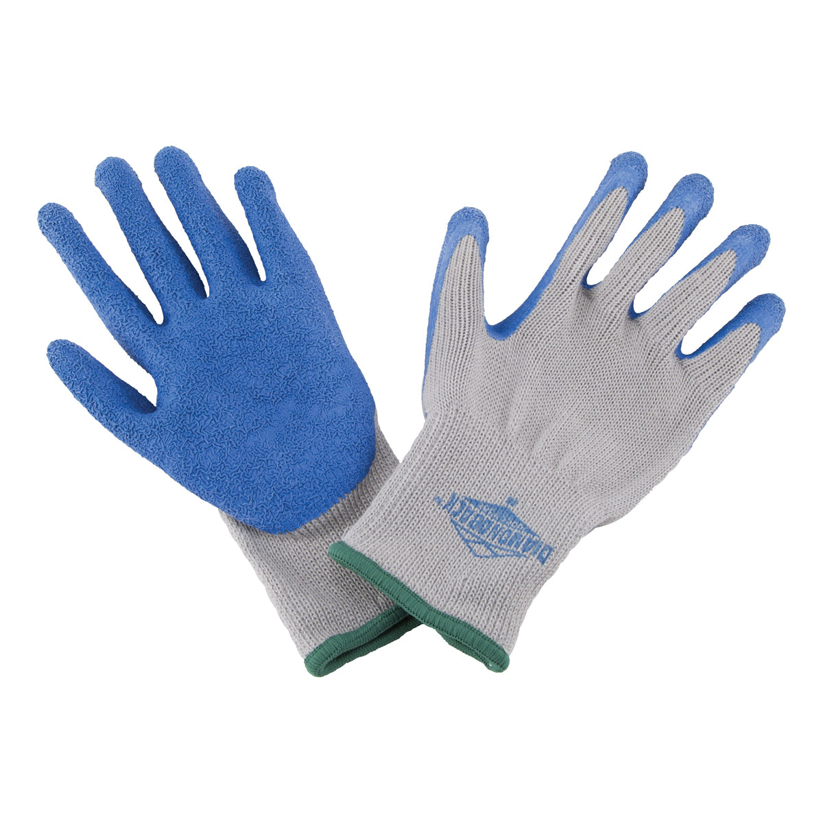 These rubber latex coated palm work glove has a 100% cotton knit liner and wrist cuff. The gloves main material consist of 70% latex and 30% cotton,. The knit liner helps to keep the dirt out.