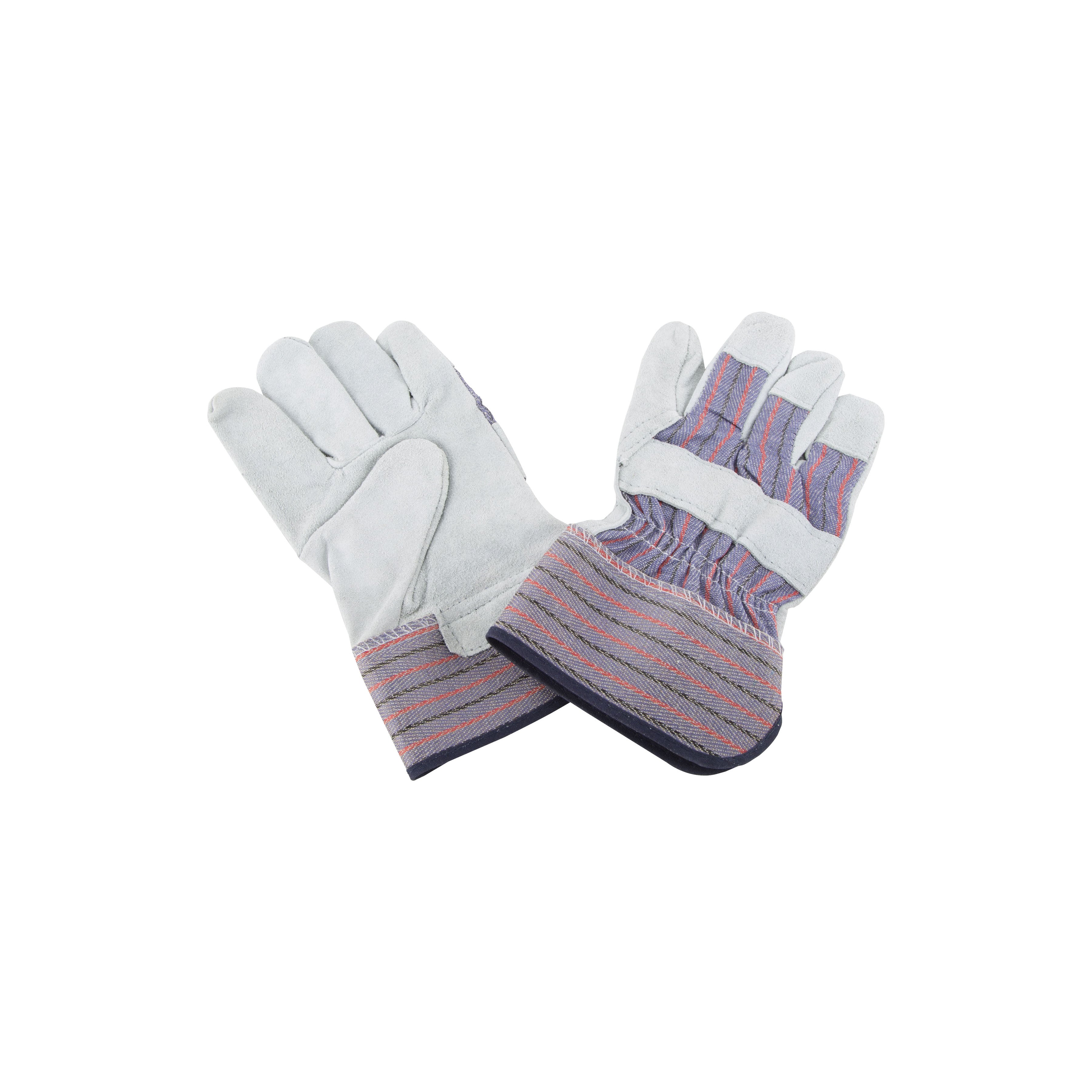 These leather palm work gloves come in one size. They are well crafted and have a continuous thumb, shirred elastic back and safety cuff. The gloves are padded and has a leather palm for comfort even on tough jobs.