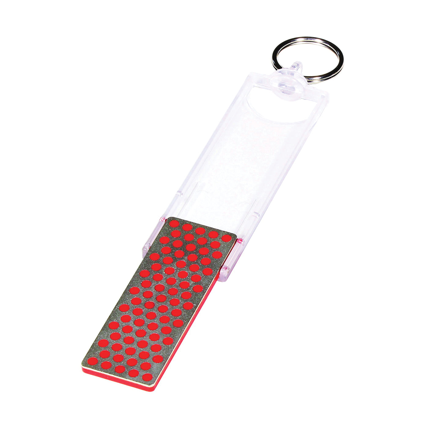 Ultra portable, key chain sharpener. Coarse diamond to transform a dull edge, fine diamond for a razor sharp edge. Sharpens knives faster than conventional stones with monocrystalline diamond surface. No oil is needed-sharpen dry or with water. Durable construction will provide years of consistent performance and reliable service.