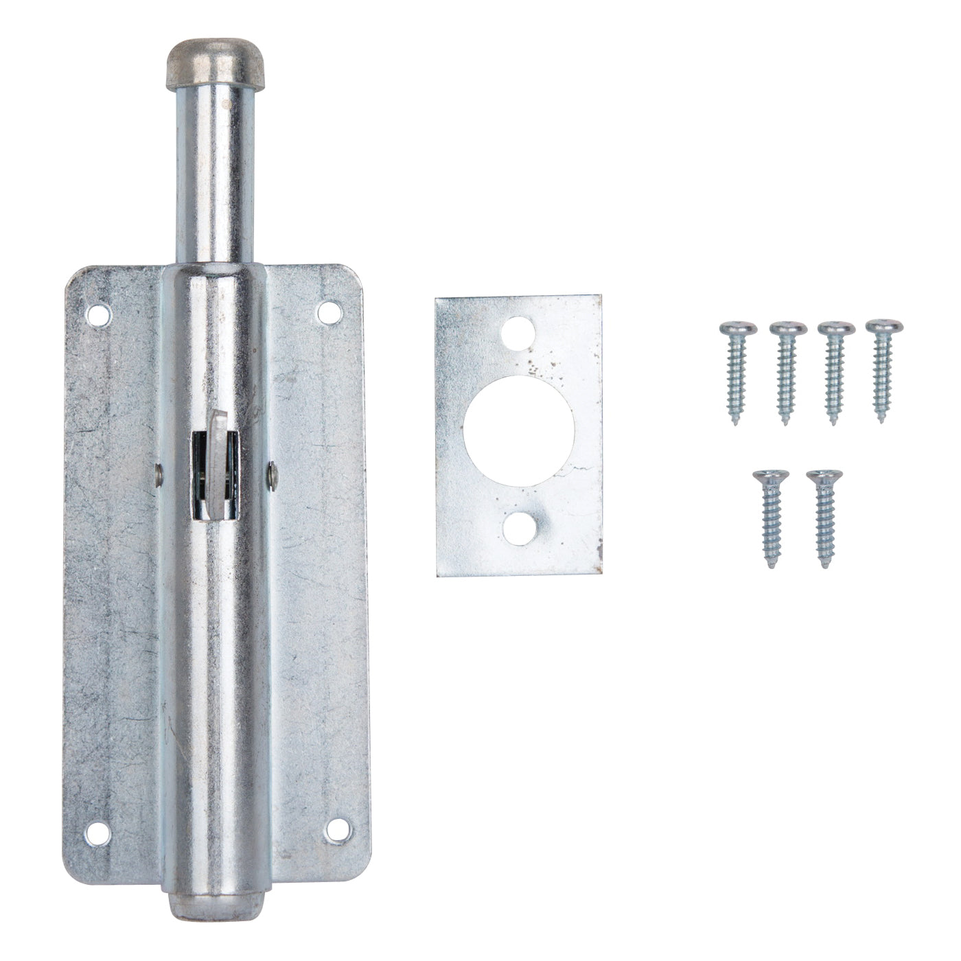The ProSource foot bolt is made of steel with a zinc plated finish. It bolts into the floor to prevent a door from being open.