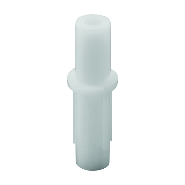 N 6672 is a nylon top mount bi-fold door pivot. Used by several manufacturers, the spring-loaded 3/8 in nylon pin inserts into the top pivot bracket above creating a pivot point for the bi-fold door.
