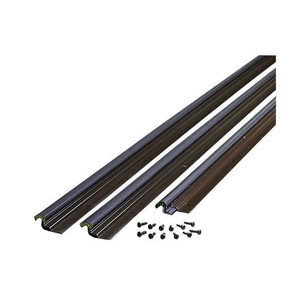 Compression weather strip, constructed of aluminum stop with v shaped foam and vinyl seal. Approved for commercial or residential use. Screw fasteners for wood or metal frame doors. Fasteners included. Install on doorstop. Slotted fastener holes ensure easy installation and adjustment. Includes two 7 ft pieces and one 3 ft piece.