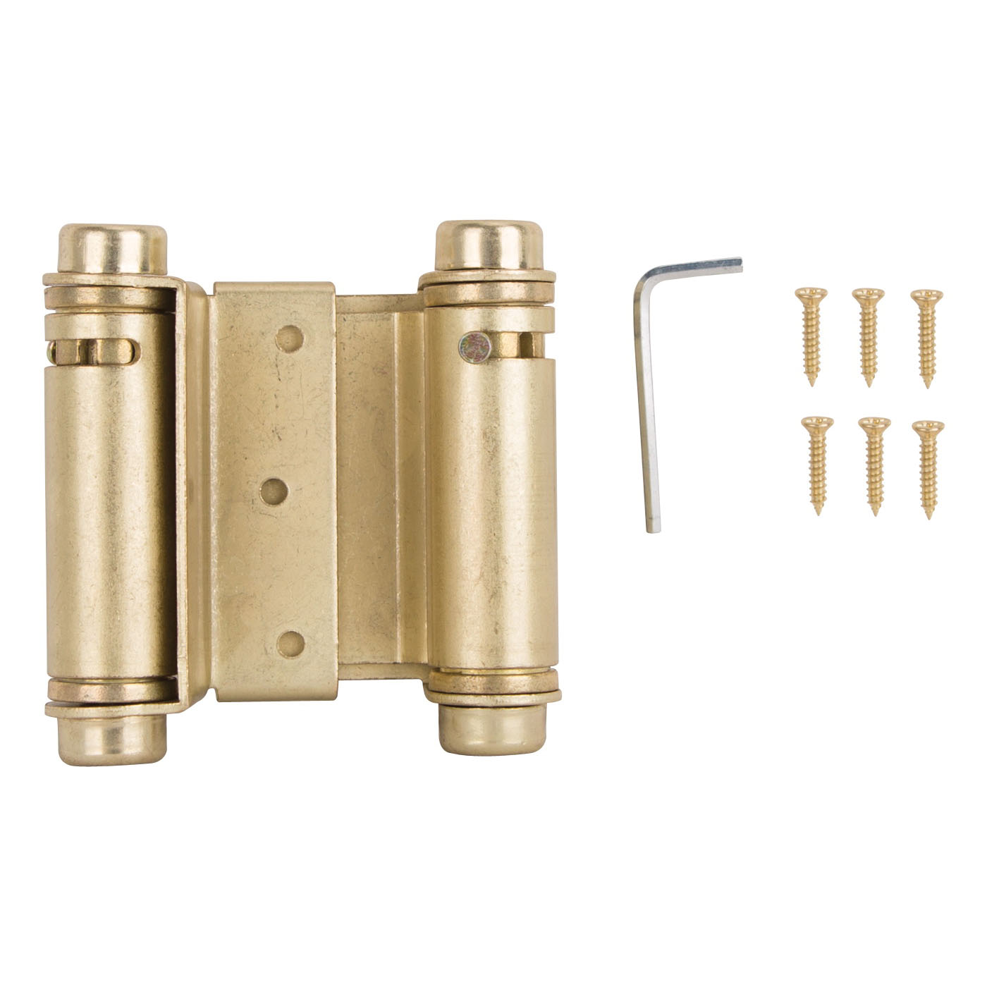 The ProSource spring hinge allows doors to swing in both directions. They are fully adjustable. An adjusting rod, stop pin, screws and instruction manual are included.