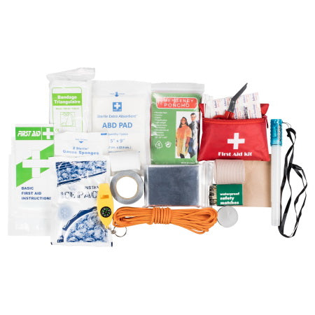 | Includes | (1) 20 ft Paracord, (1) Abdominal Pad, (1) Ace Bandage, (1) Candle, (1) Cold Compress, (1) Compass Thermometer Whistle, (1) First Aid Manual, (1) Insect Relief Pad, (1) LIFE+GEAR Glowstick Flashlight with Whistle, (1) Metal Tweezer, (1) Moleskin, (1) PBD Conforming Bandage, (1) Poncho, (1) Scissors, (1) Small Nylon Bag, (1) Survival Thermal Blanket, (1) Triangular Bandage, (1)Non-Woven Tape Roll, (10) Safety Pins, (10)Cotton Buds, (15) Round Adhesive Bandage, (15) Small-Size Adhesive Bandage, (2) Cooling Patch, (2) Elastic Butterfly Bandage, (2) Gauze Pad, (2) Non-Woven Pad, (20) Large-Size Adhesive Bandage, (20) Medium-Size Adhesive Bandage, (4) Disinfecting Cleaning Wipe, (40) Waterproof Matches, (8 )Alcohol Pad, 2 L Waterproof Bag |