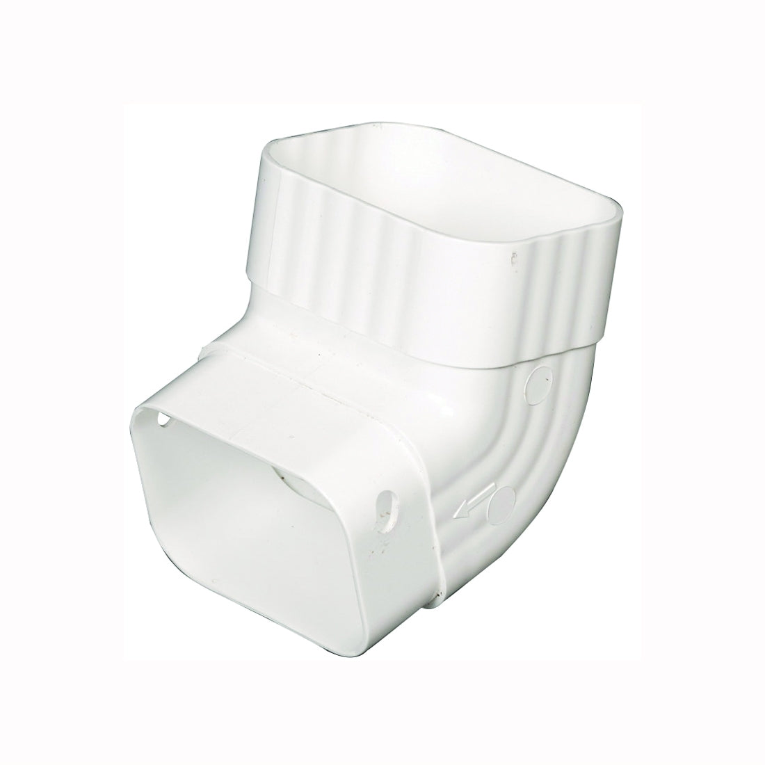 Redirects downspouts parallel to wall or side of house to prevent erosion and foundation damage. UV stabilizers provide durability. Fits 2 x 3 ft downspouts, metal or vinyl. Crush-proof and dent-proof. No sealants or caulking required. Fast, easy installation. Maintenance-free. Never needs paint. Cleans with a hose. White.