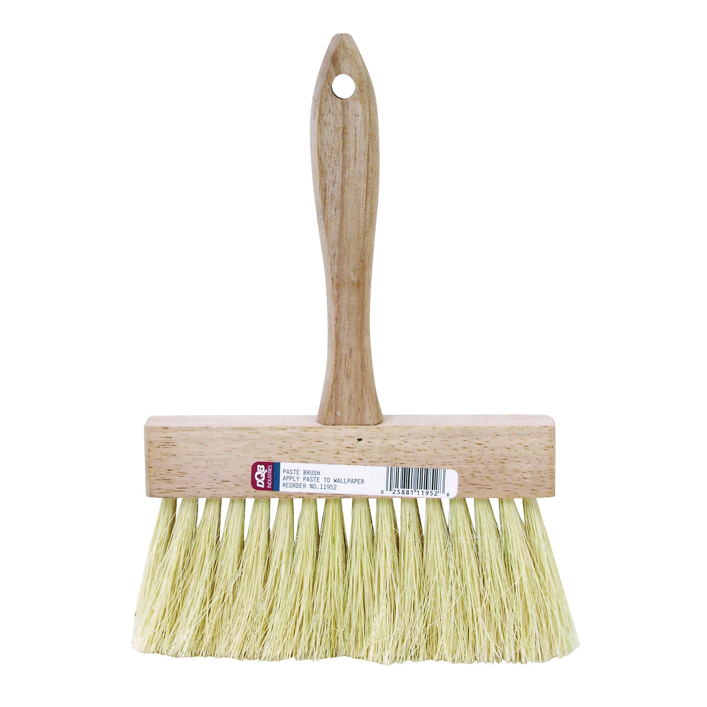The right brush to apply water paints or wallpaper paste to rough or at surfaces. Hardwood block with 6-3/4 in shaped handle. Tumble-waxed with hang-up hole.
