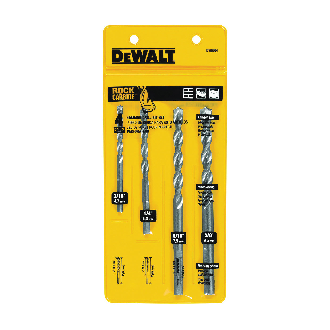 • DEWALT DW5204 Hammer Drill Bit Set, Premium, 4-Piece, Carbide, Silver
