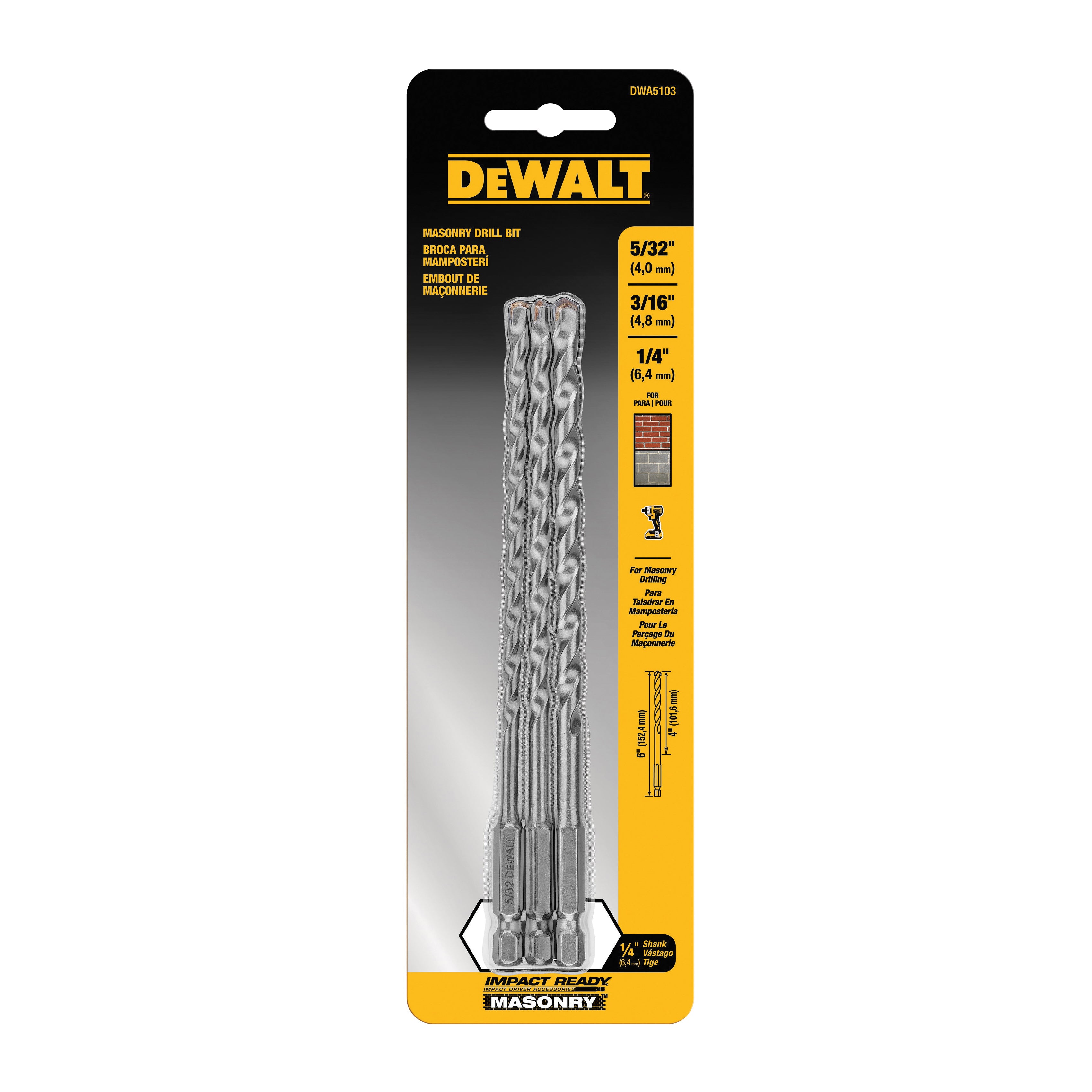 | Includes | 5/32 in, 3/16 in, 1/4 in Bits |
