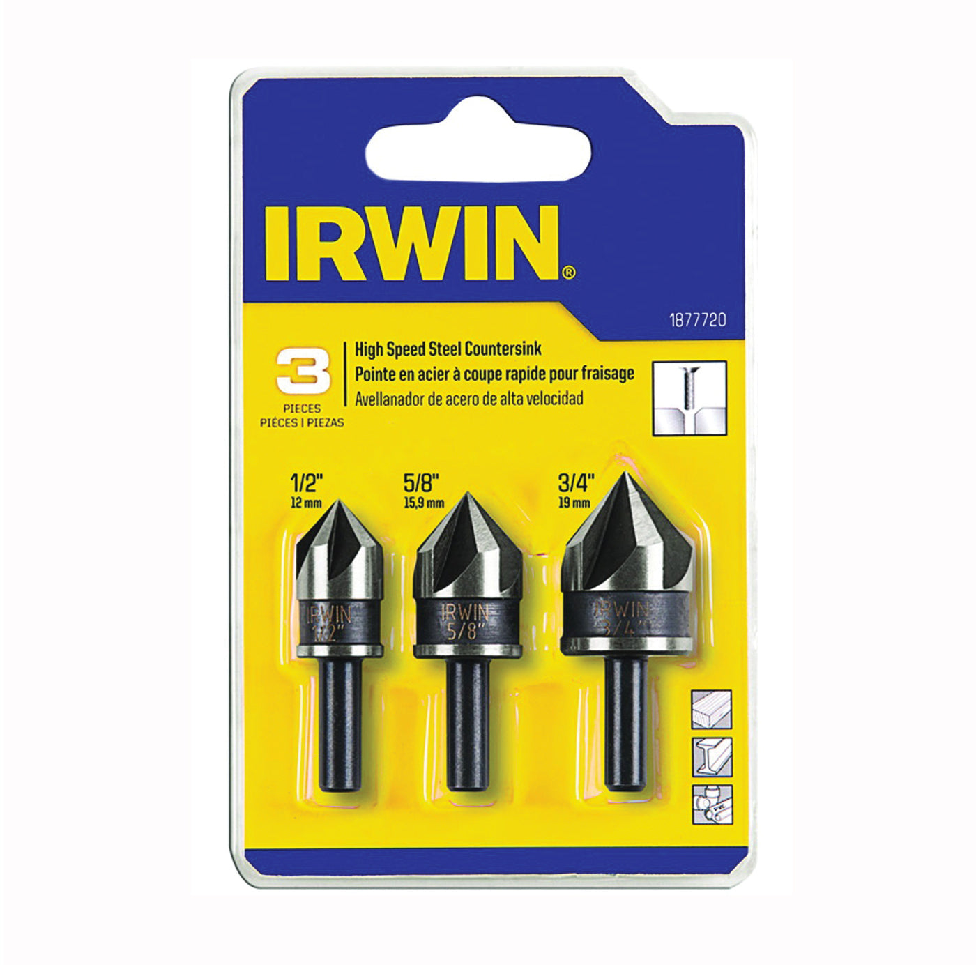 Precision ground 82 deg tip for countersinking most machinable metals, wood or plastic. High-speed steel with black oxide coating for corrosion resistance. 5-flute design reduces chatter for smoother drilling and extended life. Set includes one 1/2 in, one 5/8 in and one 3/4 in countersink.