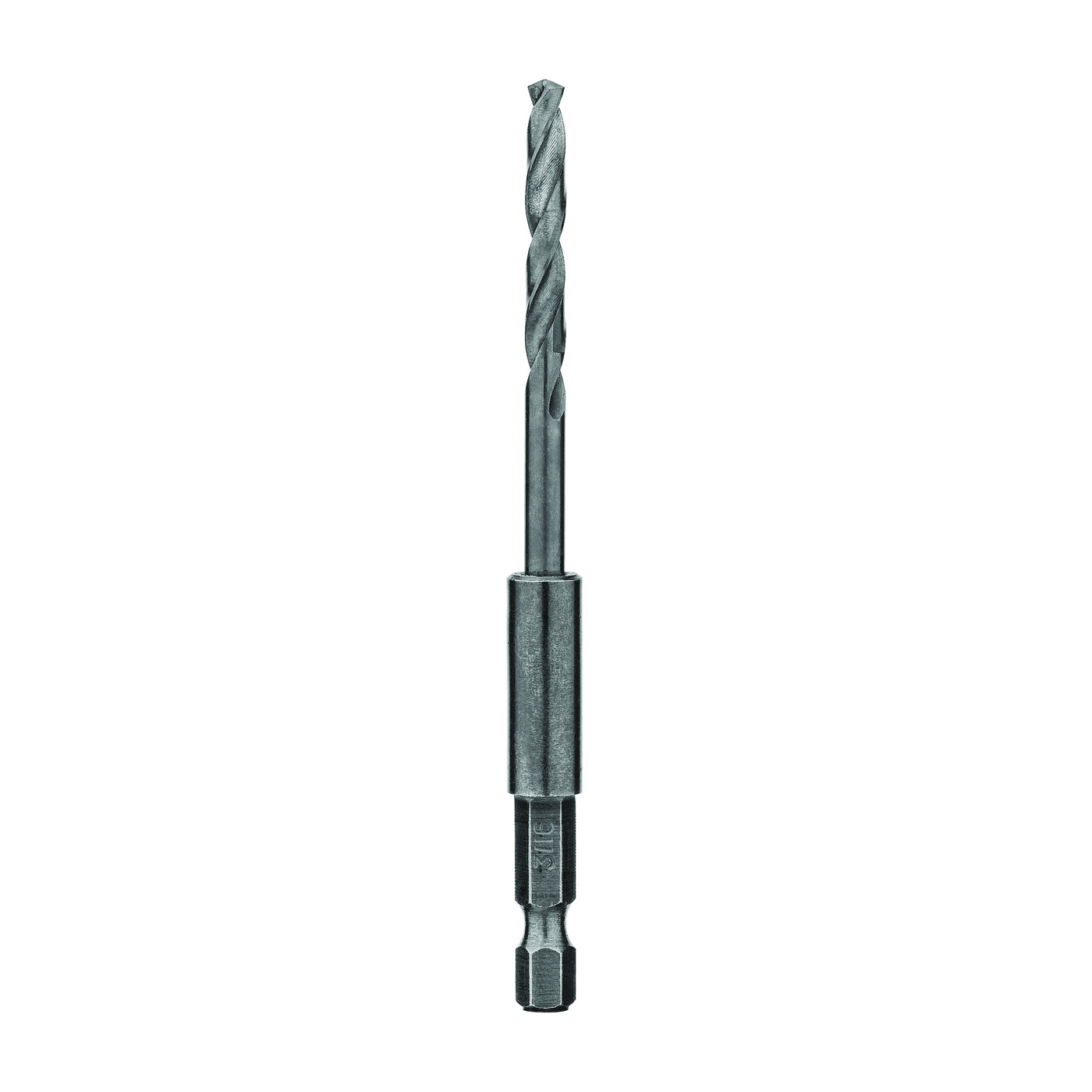 High speed steel with black oxide coating for longer life; split point tip prevents walking when drilling in wood, metal, plastic and features the Rapid Load Quick Change system; 1/4 in hex shank.