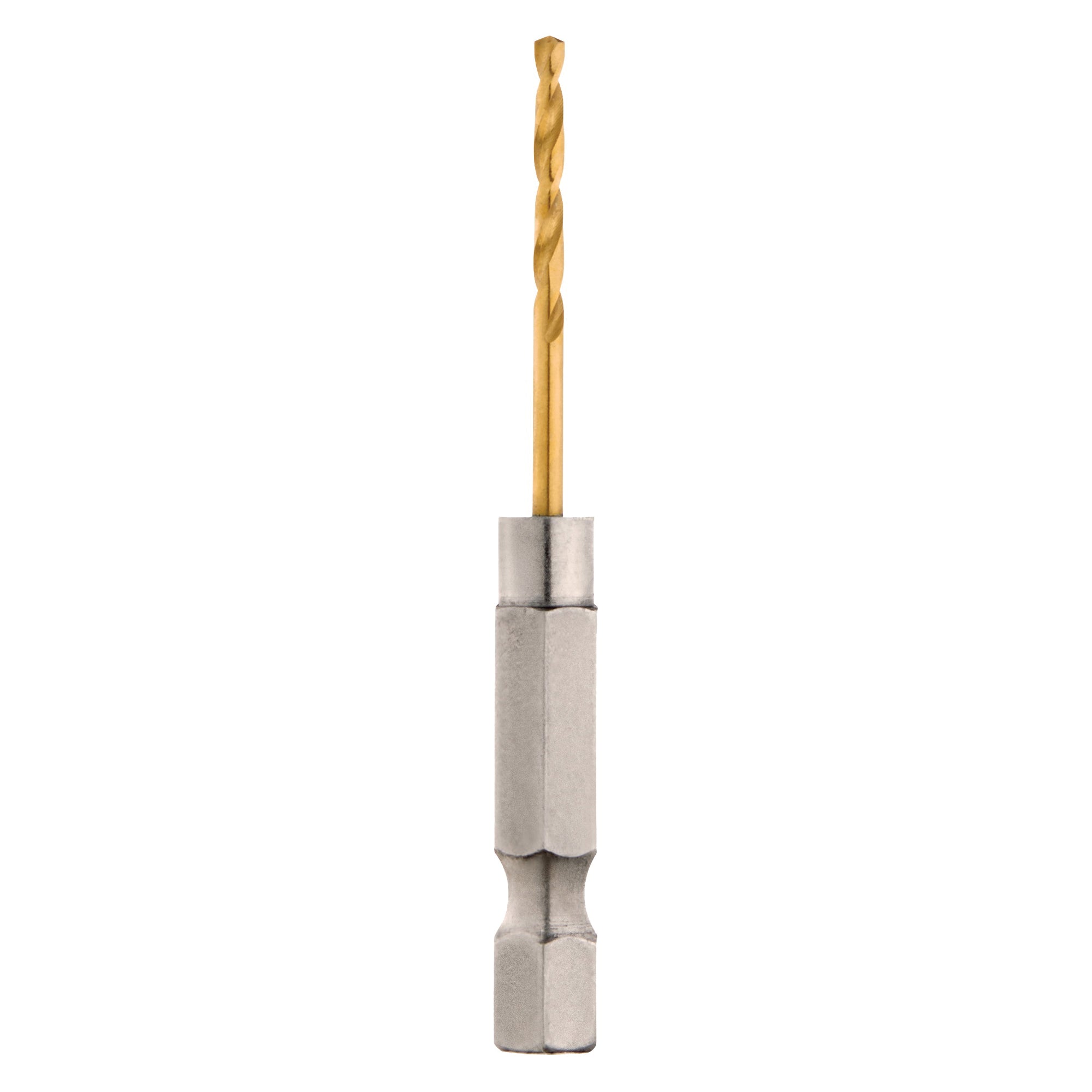 Milwaukee® Shockwave™ Impact-duty titanium drill bits with red helix are engineered for impacts and drills. Designed with a variable helix with an aggressive 35 deg helix angle which ends at 15 deg, the impact-duty titanium drill bits with red helix provide rapid chip removal to limit heat build-up to stay sharper longer. The 135 deg split point tip delivers a precision start and prevents walking for fast, accurate holes. Titanium coating can be used in all drilling applications to give you up to 3X life versus black oxide drill bits.