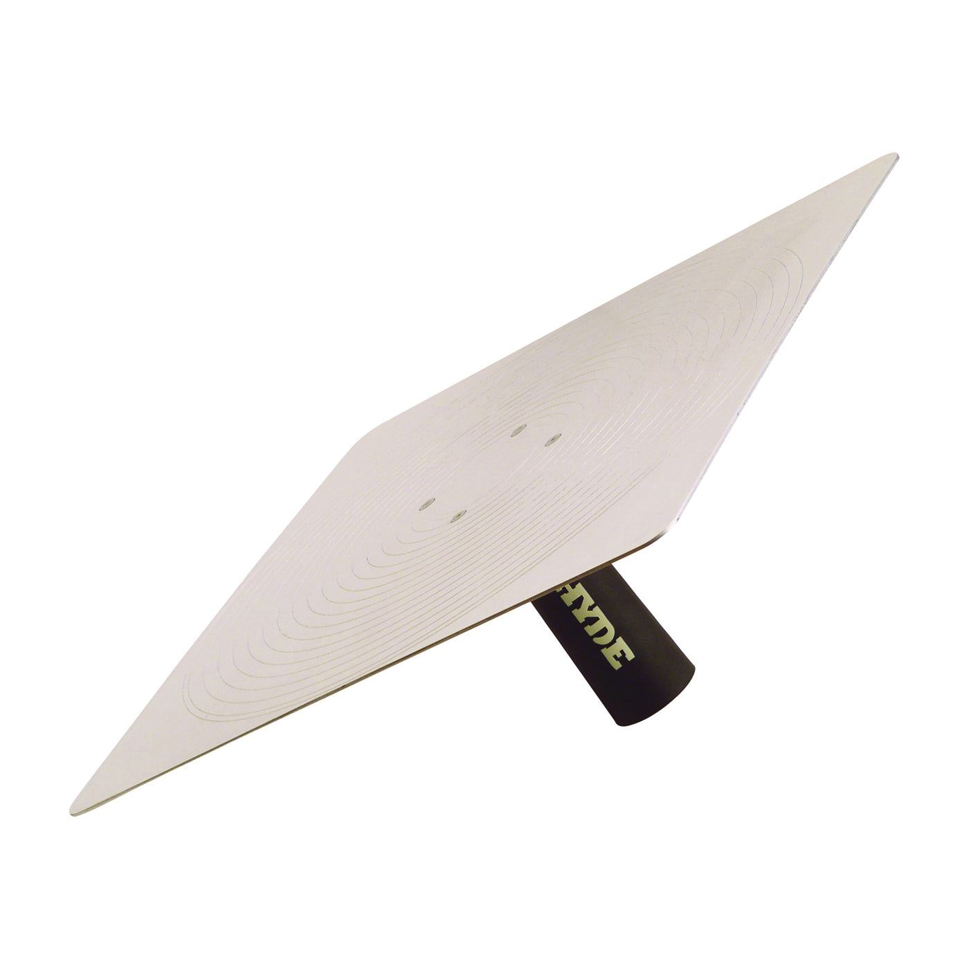 This advanced hawk design provides a comfortable, soft grip and a swivel ring that facilitates easy turning. Lightweight aluminum blade is grooved to keep compound from slipping. Ergonomic handle hugs the curve of the hand to prevent calluses. Rounded corners for safety. Open handle will fit ideally on staging post. Rubberized grip prevents slippage.